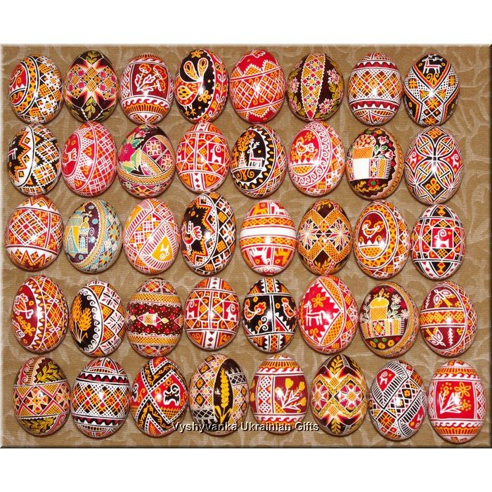 40 wonderful Ukrainian Pysanky Easter Eggs, that have been hand blown and hand painted. These are real eggs, not wooden. Great display for Easter or Christmas time home decoration. They are hand decorated following the traditional wax and dye technique. All of them are made by the real professional and look very qualitatively.