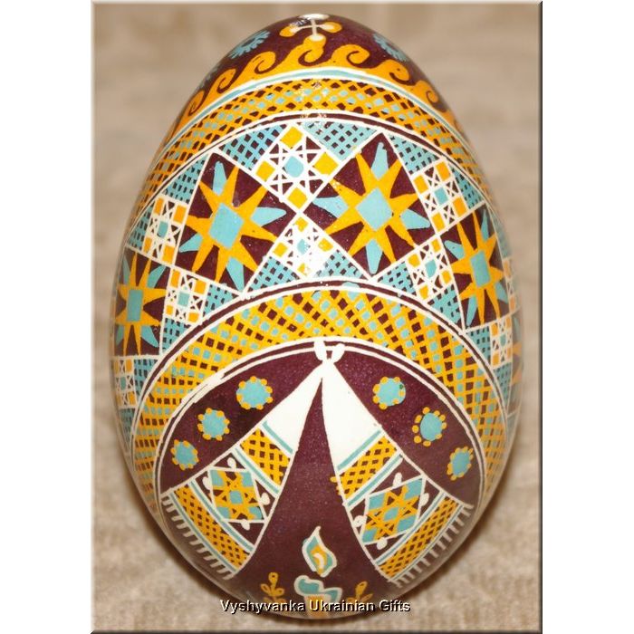 In the old times eggs were associated with different powers of nature. For ones it was a model of modern world, like a sun inside different life-giving shells. For others it was like a symbol of fertility that should be honoured. Ukrainian Easter egg symbols appeared long ago, and represent a junction between ancient history and Christian era. The name “pysanka” comes from Ukrainian “pysaty” that means “to write, to paint”. Today you can meet Ukrainian, Romanian and Poland Easter eggs. They have a lot in common because of the same origin. Today pysanky eggs are a symbol of Holy Trinity that is made for Easter holiday. The tradition is extremely popular in Eastern Europe. Old ethnic custom lives today as a religious tradition, carrying the same meaning for people: the energy of life, love and power is stored in pysanka Easter egg. By giving such a present a person shows her warm feelings and care about recipient, it is an excellent way to express a good attitude to people you value. Pysanka eggs are made of goose eggs painted by natural inks. The process of painting is saved unchanged since old times. You are given with opportunity to buy pisanka eggs as a home talisman or a holiday souvenir.